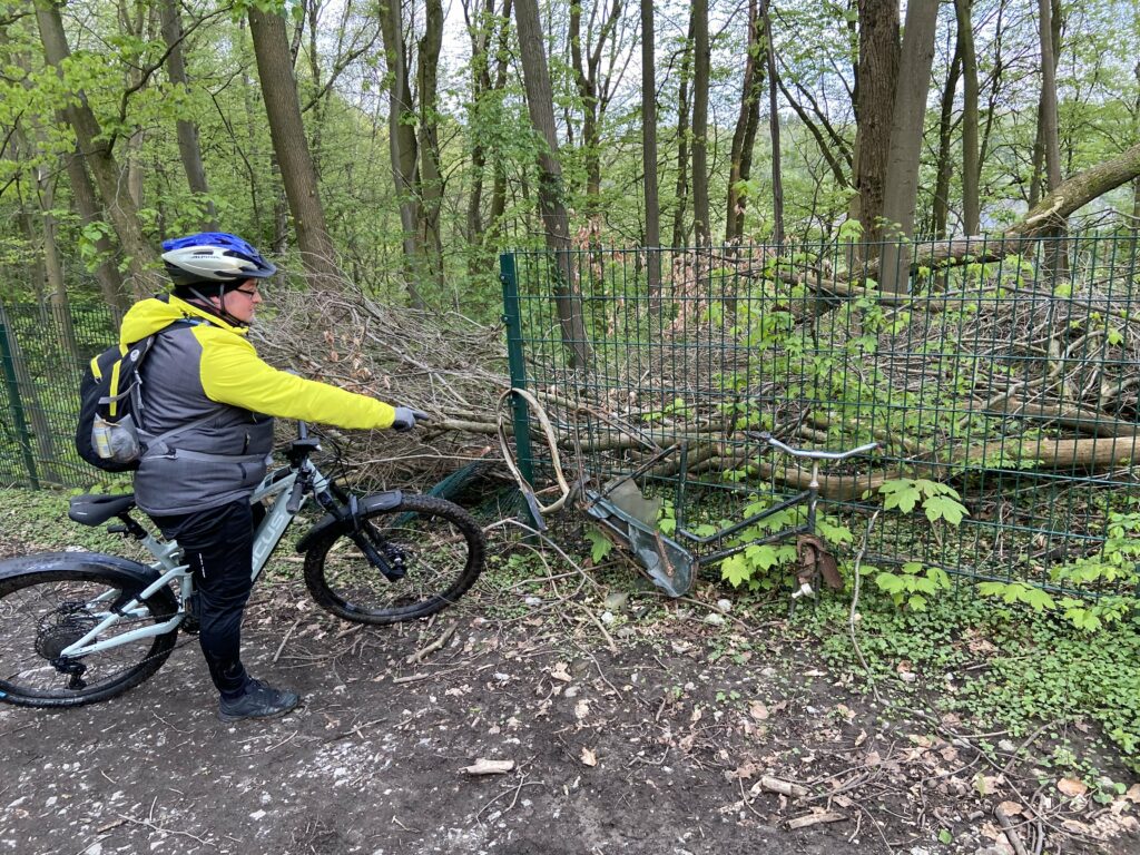 PS: Da „Der Beckmann“ sein Fahrrad gerade in der Werkstatt hat und nun gerade „schmachtet“, haben wir sogar noch eins fĂŒr ihn am Waldrand / Zaun gefunden. Muss nur abgeholt werden! đ€Łđ€Łđ€Ł