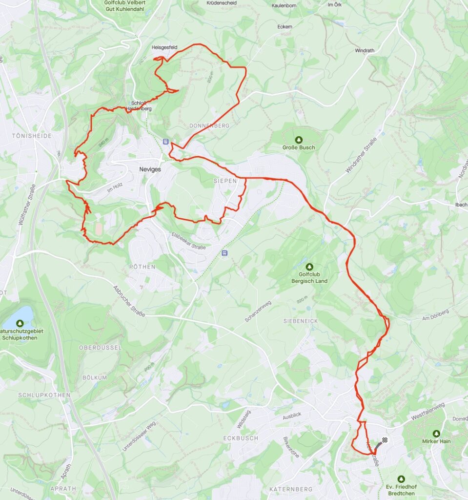 Los ging es also erst einmal in gewohnte Gefilde, Richtung Sportplatz, dann am Schwimmbad weiter hoch um dann schließlich die steile und steinige Abfahrt genießen zu dürfen. Der Übergang von runter zu hoch war dann gewohnt tricky, konnte aber gemeistert werden und so ging es dann im Wald hoch bis zur Bogenstraße, die wir dann weiter überquerten. An der ehemaligen HKS vorbei und dann wurde es spooky, als wir plötzlich hinter dem Schloss rauskamen! MrUphill kannte den Weg so noch gar nicht und hatte leichte Orientierungsschwierigkeiten, was aber nichts wirklich zur Sache tat. Ergo weiter zum Schloss Hardenberg und oben am alten jüdischen Friedhof vorbei.