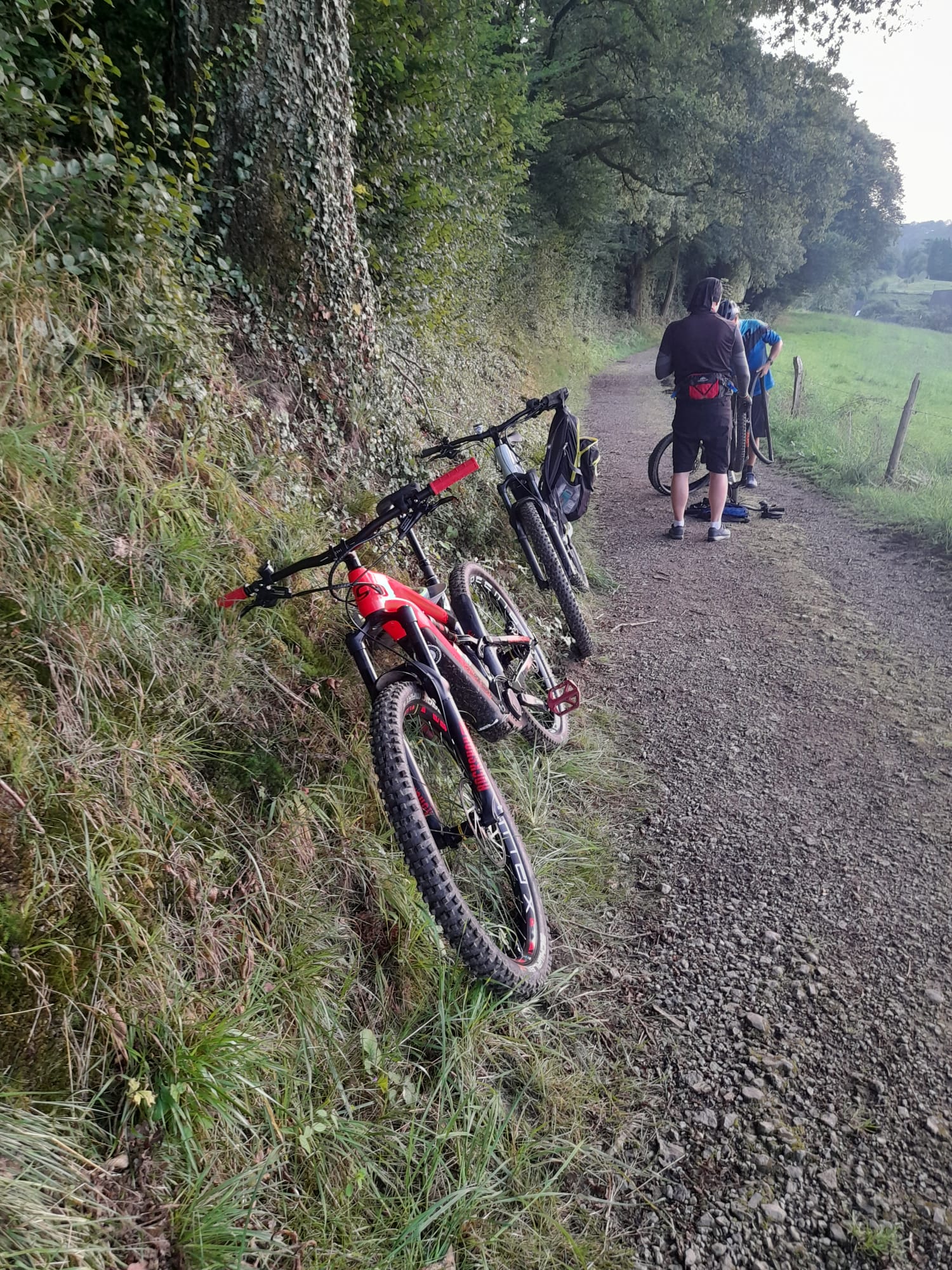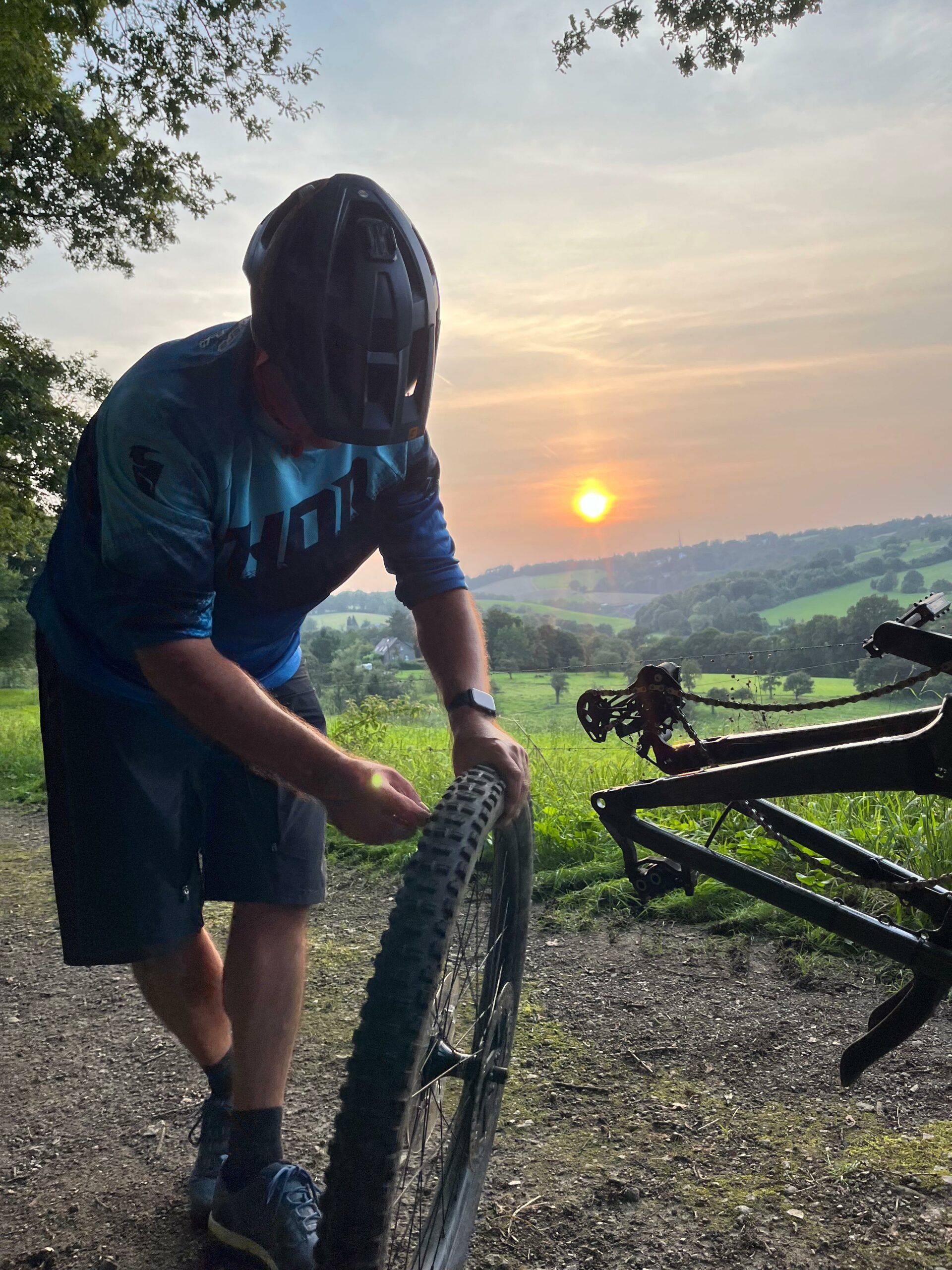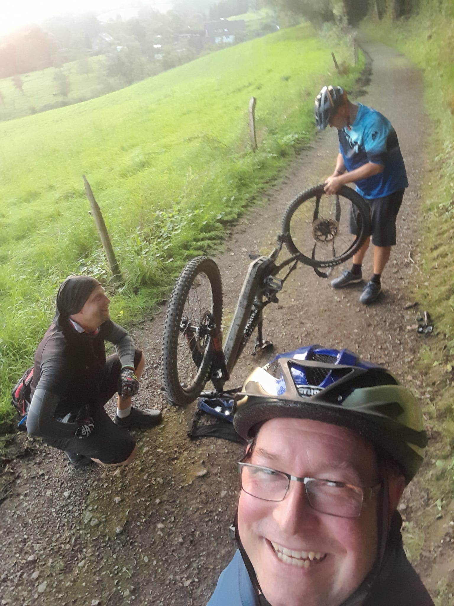 Also hieß es zunächst wieder: Zwangspause und Schlauch wechseln! Mühselig und sichtlich genervt (was aber auch den Selfie-Kanonen Schmiddie und KingLoui liegen kann 🤪😅) machte sich MrUphill dann ans Werk.