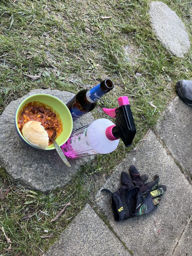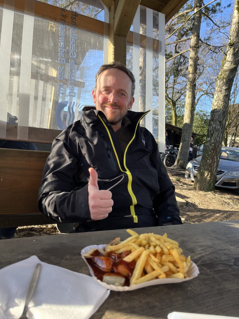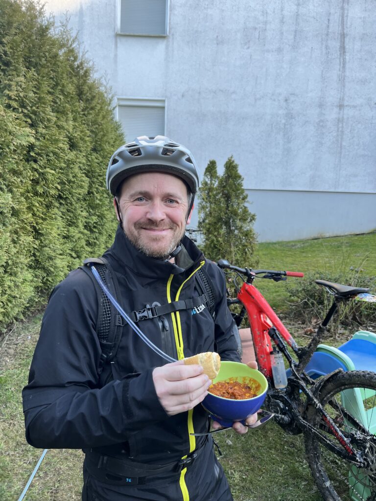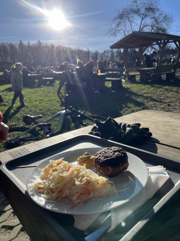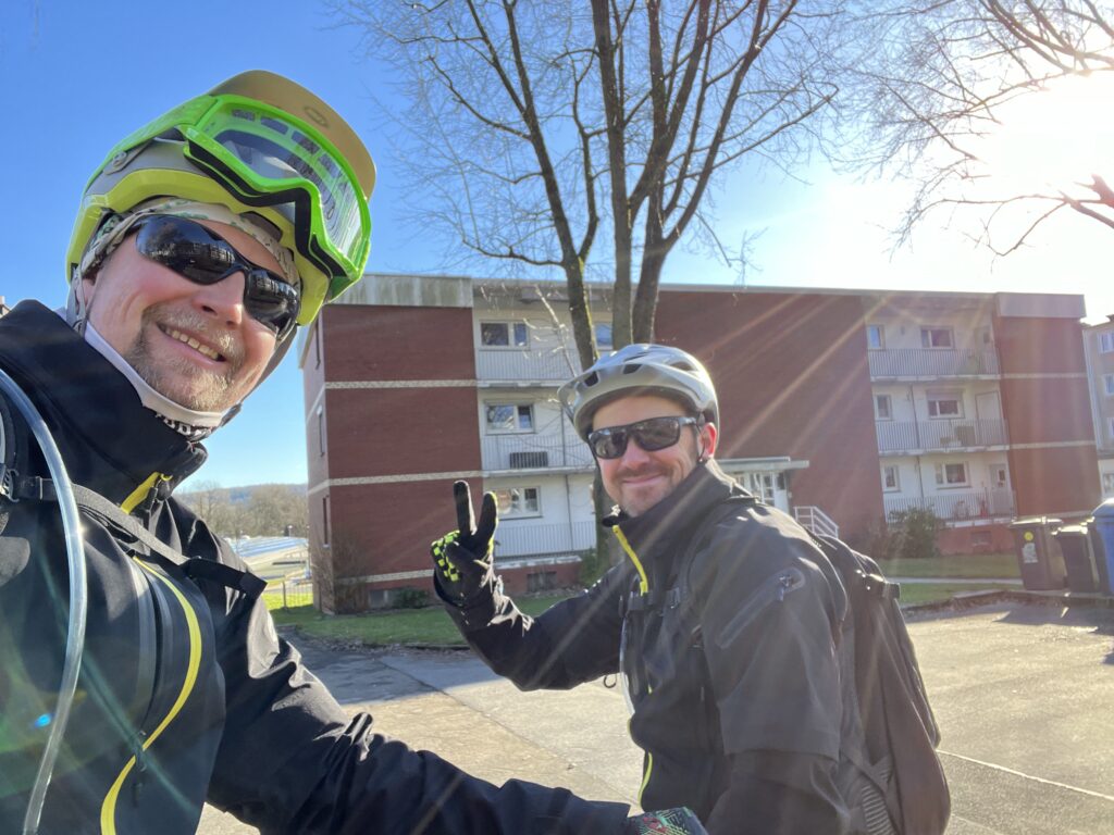 Bestes Bike Wetter im Januar! Die letzten Wochen mit Rodeln verbracht und jetzt plötzlich zweistellige Temperaturen und Sonne ☀️ wohin das Auge reicht! Die erste Tour in 2024 war geplant. Leider musste Mr.UpHill dann doch noch kurzfristig wegen Alterserscheinungen aussetzen, aber Becki konnte sich doch noch aus dem Bett quälen und gesellte sich dann dazu. Lockerer Einstieg mit nem bisschen Smalltalk rollten wir von Trail zu Trail. Ganz ohne Eile. Überraschend trocken begrüßten uns die Trails und es war eine echte Freude wieder im Sattel durch die Wälder zu rollen. Zur Halbzeit gab es dann als Stärkung einen Currywurst Pommes am allseits beliebten BergerHof. Mit dickem Bauch dann schnell noch ein paar weitere Trails auf dem Heimweg einsammeln und die Sonne ☀️ genießen! Und das Beste kommt bekanntlich zum Schluss… gerade mit Wasserschlauch und Reiniger bewaffnet sollte es los gehen, da kommt das Geburtstagskind über die Straße gewackelt und bringt nen Bierchen und ne Schale Chilli vorbei! Besser kann ne Tour ja wirklich nicht enden oder?! 😜