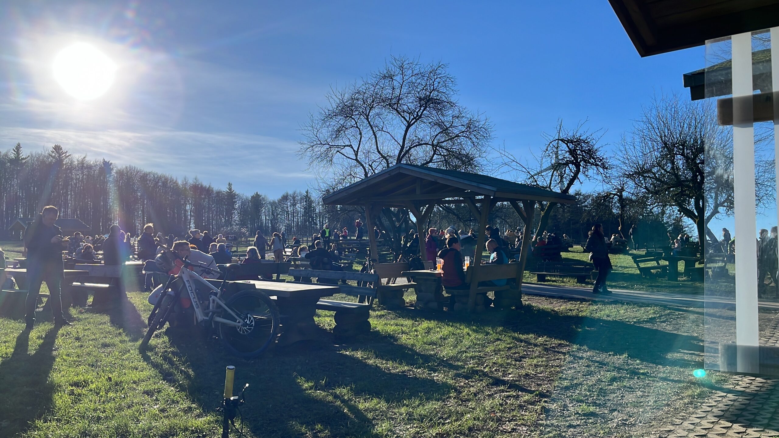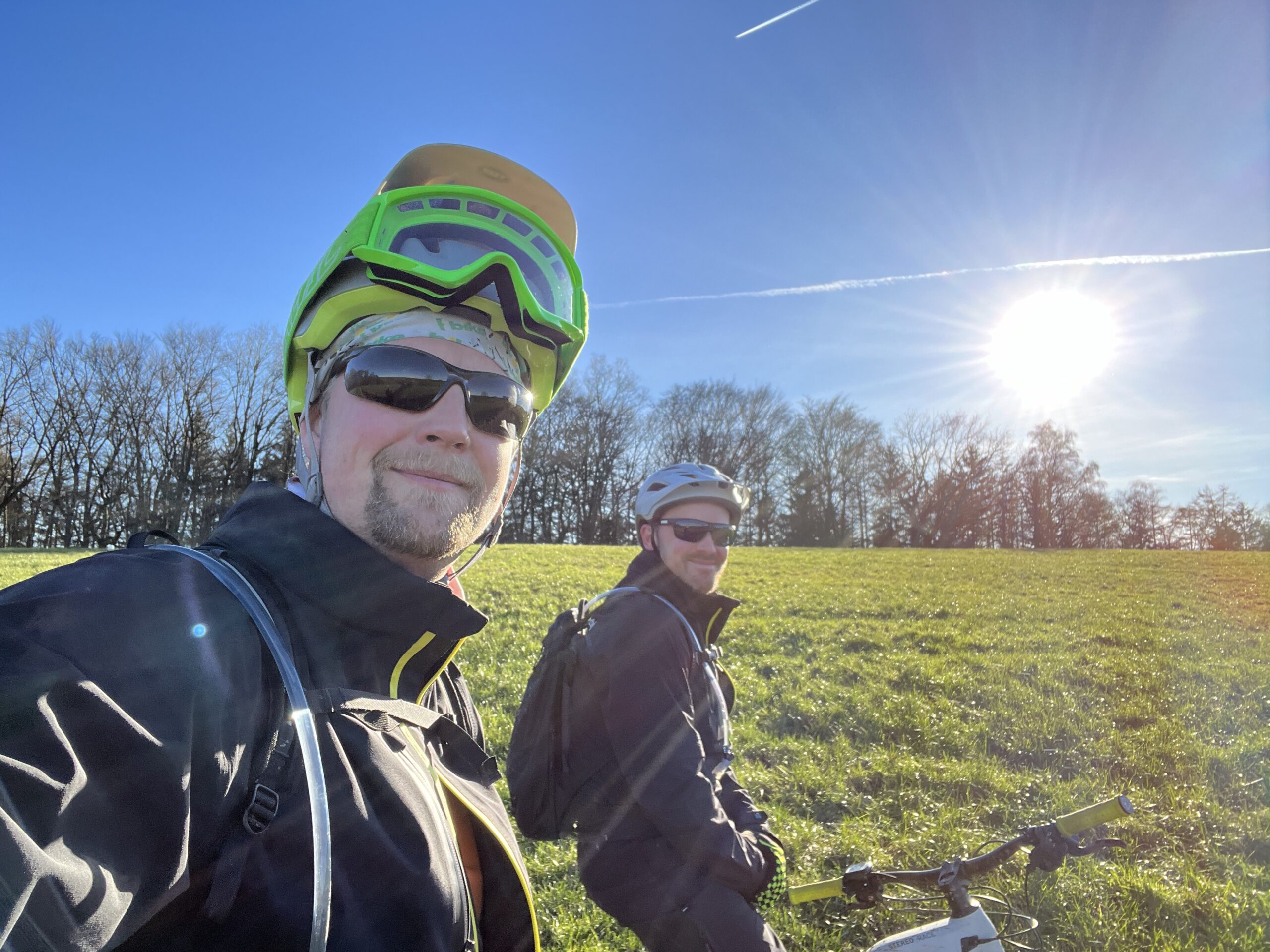 Bestes Bike Wetter im Januar! Die letzten Wochen mit Rodeln verbracht und jetzt plötzlich zweistellige Temperaturen und Sonne ☀️ wohin das Auge reicht! Die erste Tour in 2024 war geplant. Leider musste Mr.UpHill dann doch noch kurzfristig wegen Alterserscheinungen aussetzen, aber Becki konnte sich doch noch aus dem Bett quälen und gesellte sich dann dazu. Lockerer Einstieg mit nem bisschen Smalltalk rollten wir von Trail zu Trail. Ganz ohne Eile. Überraschend trocken begrüßten uns die Trails und es war eine echte Freude wieder im Sattel durch die Wälder zu rollen. Zur Halbzeit gab es dann als Stärkung einen Currywurst Pommes am allseits beliebten BergerHof. Mit dickem Bauch dann schnell noch ein paar weitere Trails auf dem Heimweg einsammeln und die Sonne ☀️ genießen! Und das Beste kommt bekanntlich zum Schluss… gerade mit Wasserschlauch und Reiniger bewaffnet sollte es los gehen, da kommt das Geburtstagskind über die Straße gewackelt und bringt nen Bierchen und ne Schale Chilli vorbei! Besser kann ne Tour ja wirklich nicht enden oder?! 😜