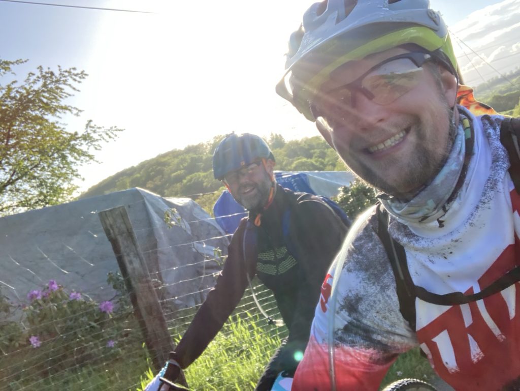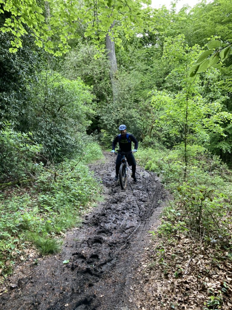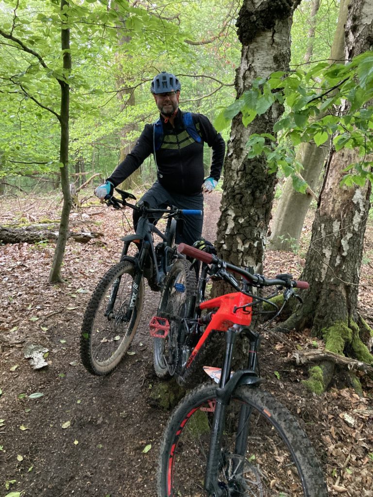 Irgendwann war es dann auch geschafft und der TrailspaĂ konnte los gehen. Naja, im Wald stehen halt auch BĂ€ume und das musste MrUphill auf der ersten Abfahrt schmerzlich feststellen.đ„Ž Danach lief es dann aber trotz zwischenzeitlichem Regenguss â richtig gut und ich konnte mich an das neue Vorbau Setup gewöhnen. Mega! Beste Entscheidung! Was soânen paar Spacer weniger am Fahrverhalten aus machen können. đ„ł