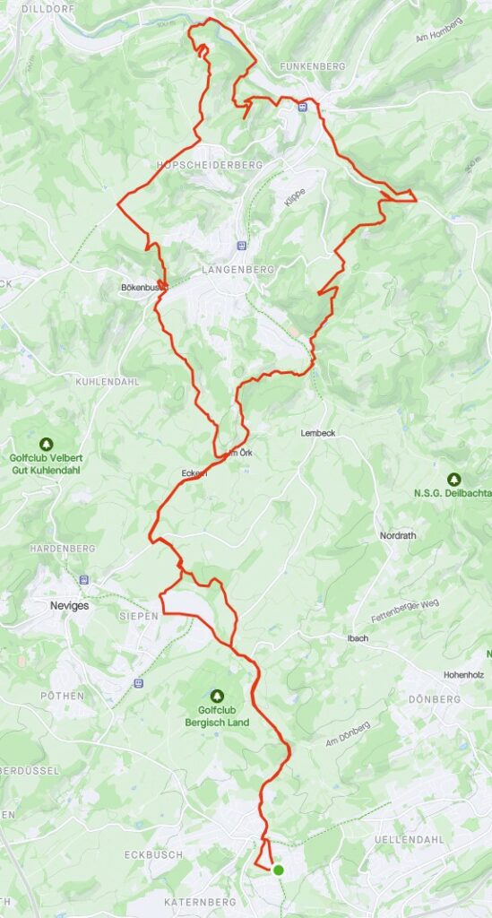 Da es sich hierbei um eine recht spontane Aktion gehandelt hat (geplant wurde hier einen Tag vorher, also am Donnerstag, 25.08.2022, dass es einen Tag drauf soweit sein sollte), fiel die Planung etwas kurzfristig aus. Aber mit der gemachten Tour konnte ich, den Aussagen des Erstlingsfahrer nach, einen sehr guten Eindruck vermitteln, was wir hier im bergischen so fahren. (Rund um Meerbusch ist die Streckenbegebenheit eher mal flacher Natur.)