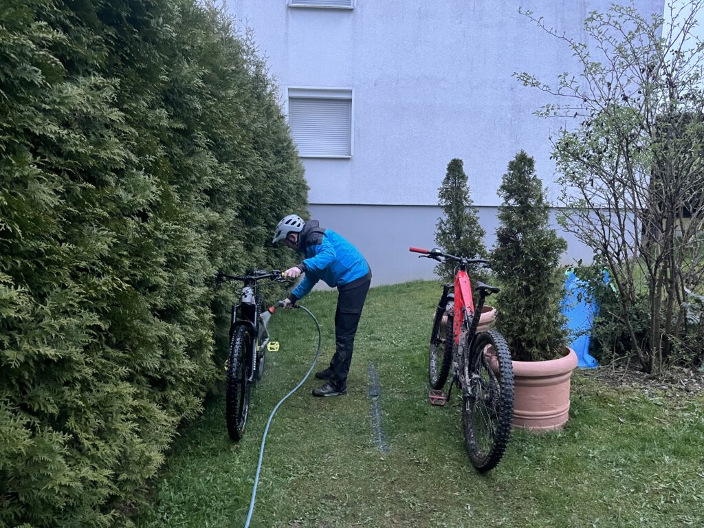 Es sollte endlich mal wieder eine etwas Trail-lastigere Tour werden. Trotz des schlechten Wetters der letzten Tage war unsere Stimmung gut, da es zumindest von oben trocken war. Von unten sollte uns auf den Trails allerdings dann was ganz anderes erwarten. Nass, schlammig, rutschig… schon auf den ersten Trail-Metern war mir klar, dass wird heute wieder mal eine kleine Skill-Probe. Jaja, man könnte es ja auch etwas langsamer gehen lassen… aber wer will schon langsam?!?! Langsam ist so ein bisschen wie nett, und nett ist der kleine Bruder von Schei**!!! Nach der ersten ruppigen, rutschigen Abfahrt ließ ich dann mal den Beckmann vor um Ihn die ein oder andere Abfahrt mal vor der Linse zu haben. Zwischendurch musste ich dann allerdings auch mal vorweg rollen und freute mich jedes mal auf seine Ankunft am Trailende. So einen Spaß hatte er anscheinend lange nicht mehr…