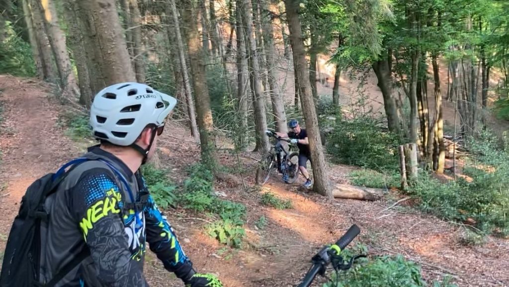 So locker die erste Etappe sich noch gab, kam die meisten (2/3 der Teilnehmer 😜) schnell an ihre Grenzen: Technischer (mega) Uphill! Mitten im Wald eine „Steilwand“, die außer King Loui keiner der der Fahrer bezwingen konnten. Aber auch King Loui hatte hierbei so seine Mühen und so hab es hier „ernsthaften“ Verschleiß bei etlichen Versuchen, den Uphill zu meistern! 🤣 Aber dazu später mehr! 😁