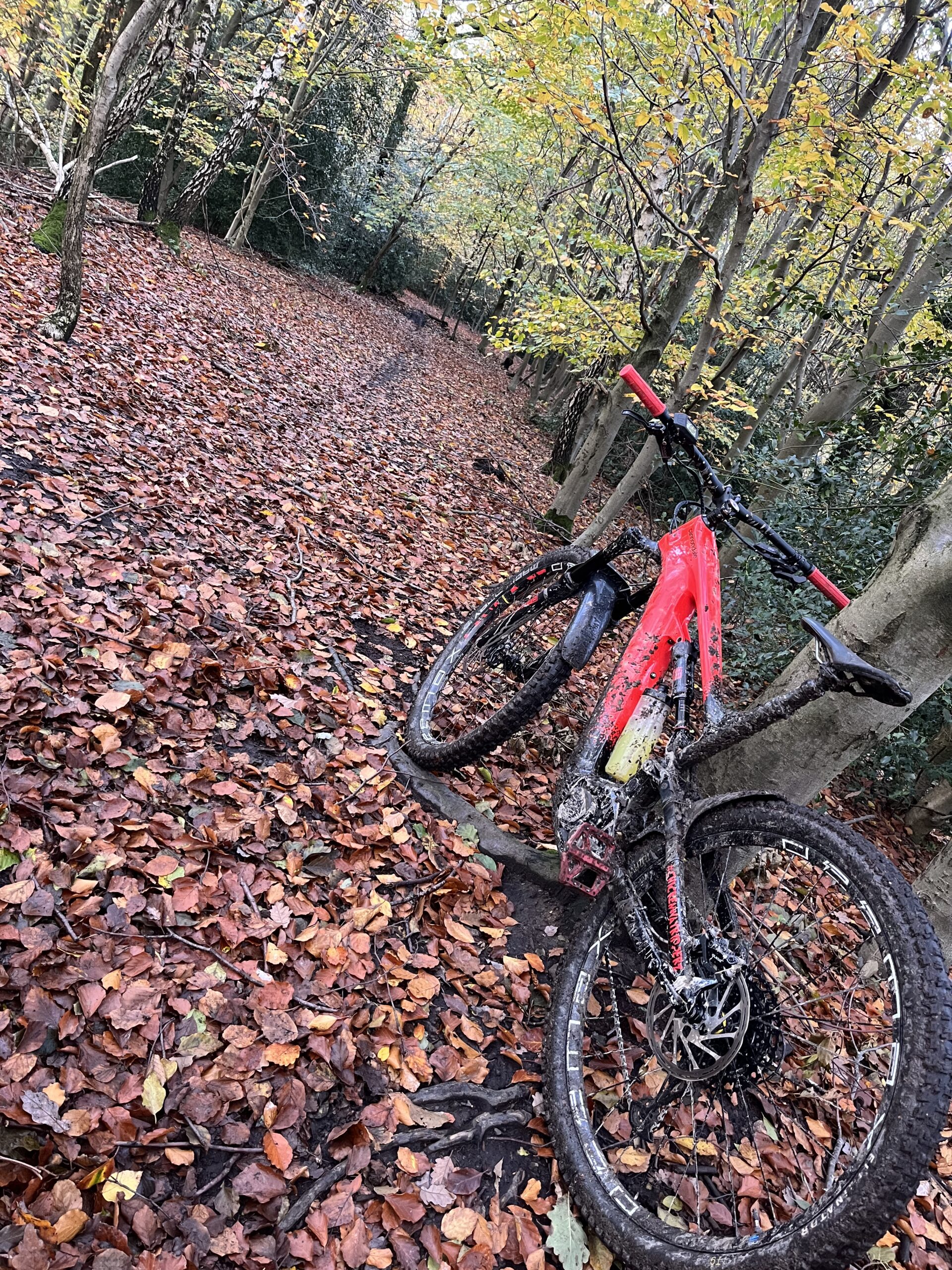 Heute endlich mal wieder die Sonne gesehen! Vorhänge auf, Sonne ☀️ rein!!! Erstmal mit der Familie den Vormittag genießen und ne kleine Runde im wärmenden Sonnenschein spazieren gehen. Im Anschluss dann ab in den Dirtlej, der Regen der letzten Tage lies üble Trailverhältnisse vermuten, und ab auf‘s Bike im Wald 🌳 spielen gehen…🤪 Nicht mal am ersten Trail angekommen sah ich schon aus wie ne Wutz! Schlamm…Schlamm wohin das Auge nur blickt. Naja, hatte ich ja befürchtet, allerdings dann doch unterschätzt. An vielen steileren Trailstücken blieb nur eine Wahl: Augen zu und durch… immer entlang der Fall-Linie!