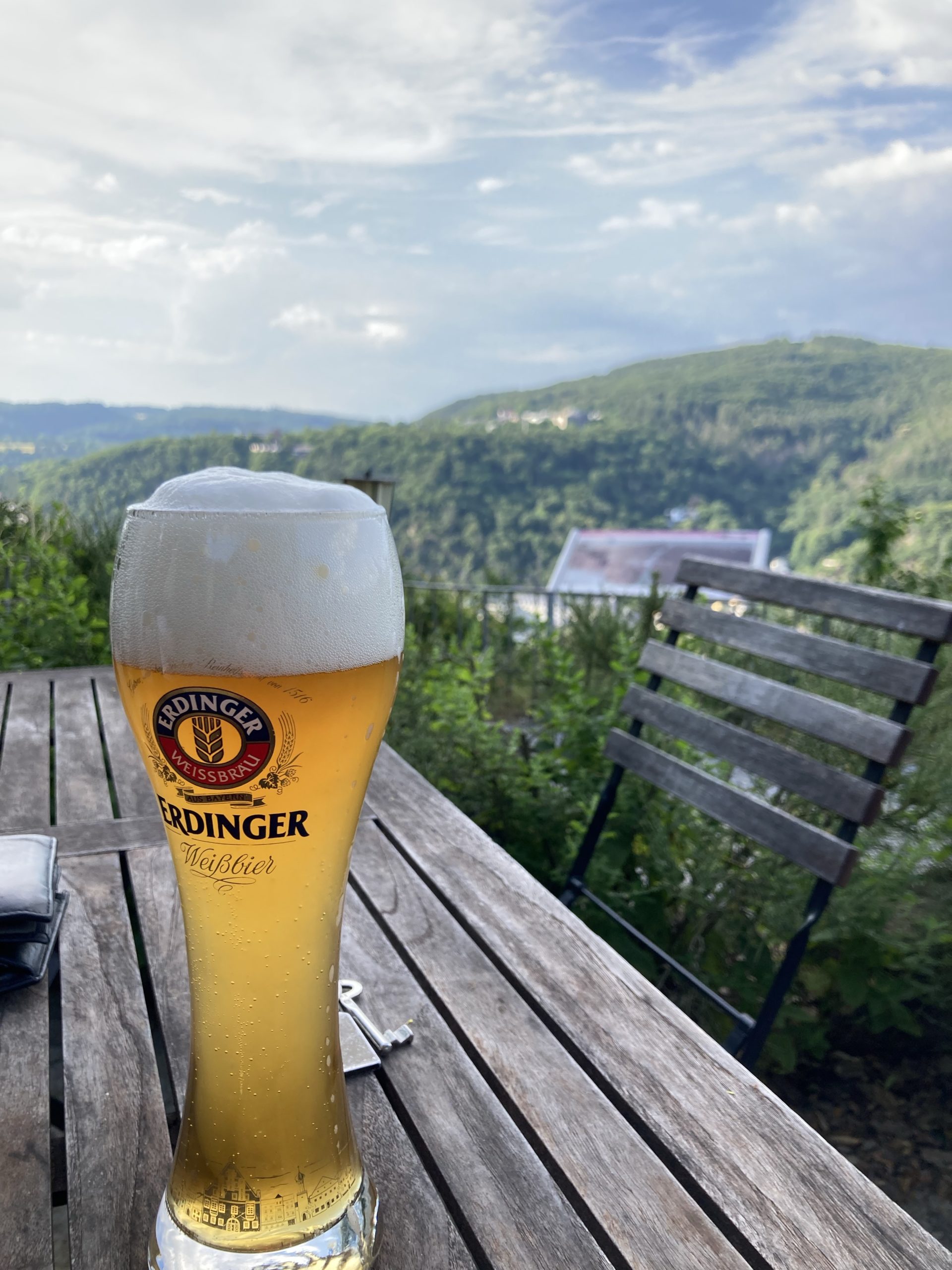 Bei Ankunft an diesem kurz auf die Uhr geschaut… Perfekt!!! Noch genug Zeit für ein (oder zwei) kalte Weizenbier! 😜