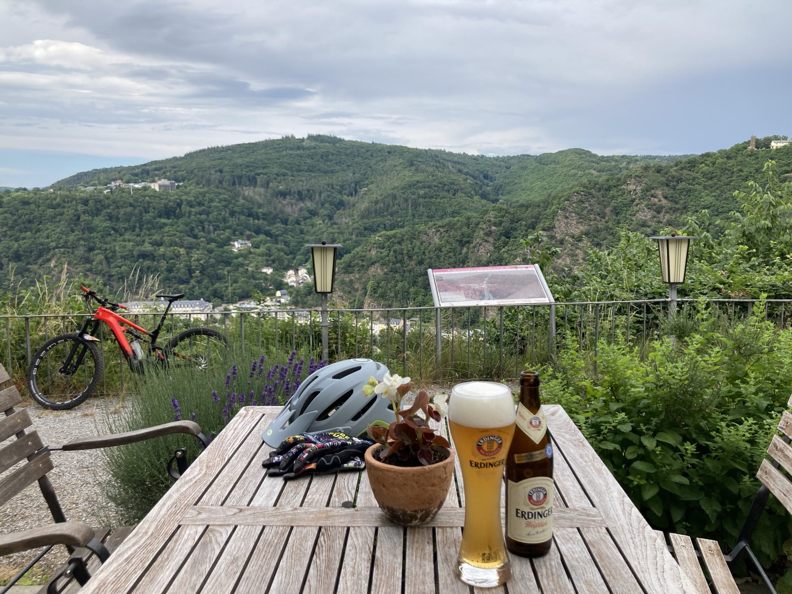Nachdem ich mich dann doch irgendwann nochmal auf gerafft hatte, machte ich mich auf den Weg zur zweiten Hälfte der bereits am Vormittag begonnenen „4 Türme Tour“. Eine wirklich schöne Runde mit dem ein oder anderen sehr steilen Anstieg, die letzten Endes durch die anspruchsvolle Abfahrt von „Concordiaturm“ bis ins Tal belohnt wurde. Dort angekommen gab es dann am Lahnufer noch einen „Latte Macchiato“ bevor es zurück Richtung Berghotel ging.