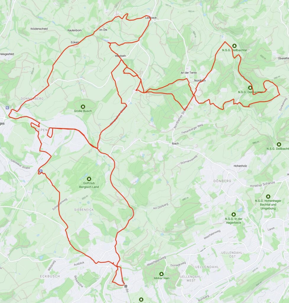 Zunächst Richtung Windrather Straße, dann weiter mitten durch den Wald, so muss das sein!