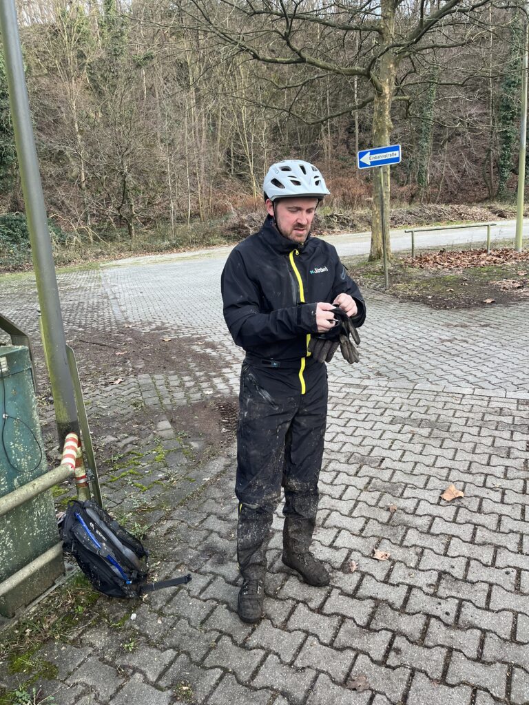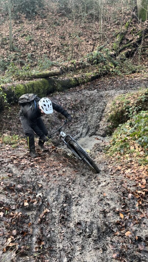 Zum Jahresende passierte dann doch noch das unglaubliche und einer der CWR Buddies setzte sich in den Sattel um mich auf einer Tour zu begleiten. „The B“ verließ die Couch und presste sich nach den Feiertagen in seinen DirtSuit. Wurst in Pelle war es zwar noch nicht, aber an der ein oder anderen Stelle saß das gute Stück dann doch etwas geschmeidiger am Körper. Geschmeidig bewegten wir uns dann auch über die Trails, die sich teilweise zu kleinen Bächen verwandelt hatten. Mittlerweile versickert das Wasser ja nicht mehr im Boden, sondern sammelt sich großflächig in senken und Mulden. Hier entstehen großflächige Schlamm Teiche, die kaum mehr zu durchqueren sind. Die kleinen Bäche, die man im Normalfall während einer Tour leicht überquert, sind aktuell zu kleinen Flüssen angewachsen und man muss aufpassen, hier nicht unterzugehen. Eine Badekappe, ein Rettungsreifen oder Schlauchboot wäre an der ein oder anderen Stelle hilfreich gewesen. Genau die richtigen Verhältnisse um nach längerer Abwesenheit “The B“ den Spaß, am Biken wieder nahe zu bringen. Lustig war es definitiv, auch wenn man sich auf dem ein oder anderen Trail dem Lauf des Wassers folgen musste. Leider hatte „The B“ seinen Avatar nicht dabei, schaffte es aber trotzdem ohne größere Probleme. Zum Schluss rächte sich allerdings dann die längere Bewegungpause bei „The B“ den nicht nur seine Beine sondern auch kurz vor Schluss sein Akku 🔋 im Stich ließen. Zum Glück gab’s während des obligatorischen Bike Wash nen kleines Stärkungsbierchen auf die Faust.