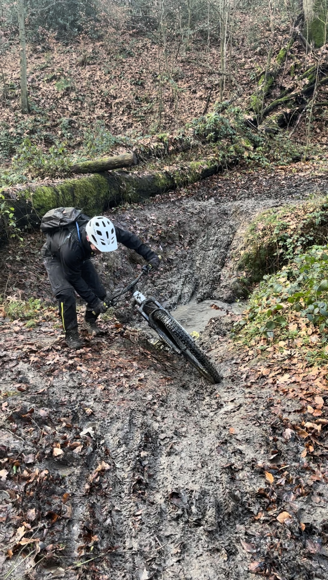 Zum Jahresende passierte dann doch noch das unglaubliche und einer der CWR Buddies setzte sich in den Sattel um mich auf einer Tour zu begleiten. „The B“ verließ die Couch und presste sich nach den Feiertagen in seinen DirtSuit. Wurst in Pelle war es zwar noch nicht, aber an der ein oder anderen Stelle saß das gute Stück dann doch etwas geschmeidiger am Körper. Geschmeidig bewegten wir uns dann auch über die Trails, die sich teilweise zu kleinen Bächen verwandelt hatten. Mittlerweile versickert das Wasser ja nicht mehr im Boden, sondern sammelt sich großflächig in senken und Mulden. Hier entstehen großflächige Schlamm Teiche, die kaum mehr zu durchqueren sind. Die kleinen Bäche, die man im Normalfall während einer Tour leicht überquert, sind aktuell zu kleinen Flüssen angewachsen und man muss aufpassen, hier nicht unterzugehen. Eine Badekappe, ein Rettungsreifen oder Schlauchboot wäre an der ein oder anderen Stelle hilfreich gewesen. Genau die richtigen Verhältnisse um nach längerer Abwesenheit “The B“ den Spaß, am Biken wieder nahe zu bringen. Lustig war es definitiv, auch wenn man sich auf dem ein oder anderen Trail dem Lauf des Wassers folgen musste. Leider hatte „The B“ seinen Avatar nicht dabei, schaffte es aber trotzdem ohne größere Probleme. Zum Schluss rächte sich allerdings dann die längere Bewegungpause bei „The B“ den nicht nur seine Beine sondern auch kurz vor Schluss sein Akku 🔋 im Stich ließen. Zum Glück gab’s während des obligatorischen Bike Wash nen kleines Stärkungsbierchen auf die Faust.