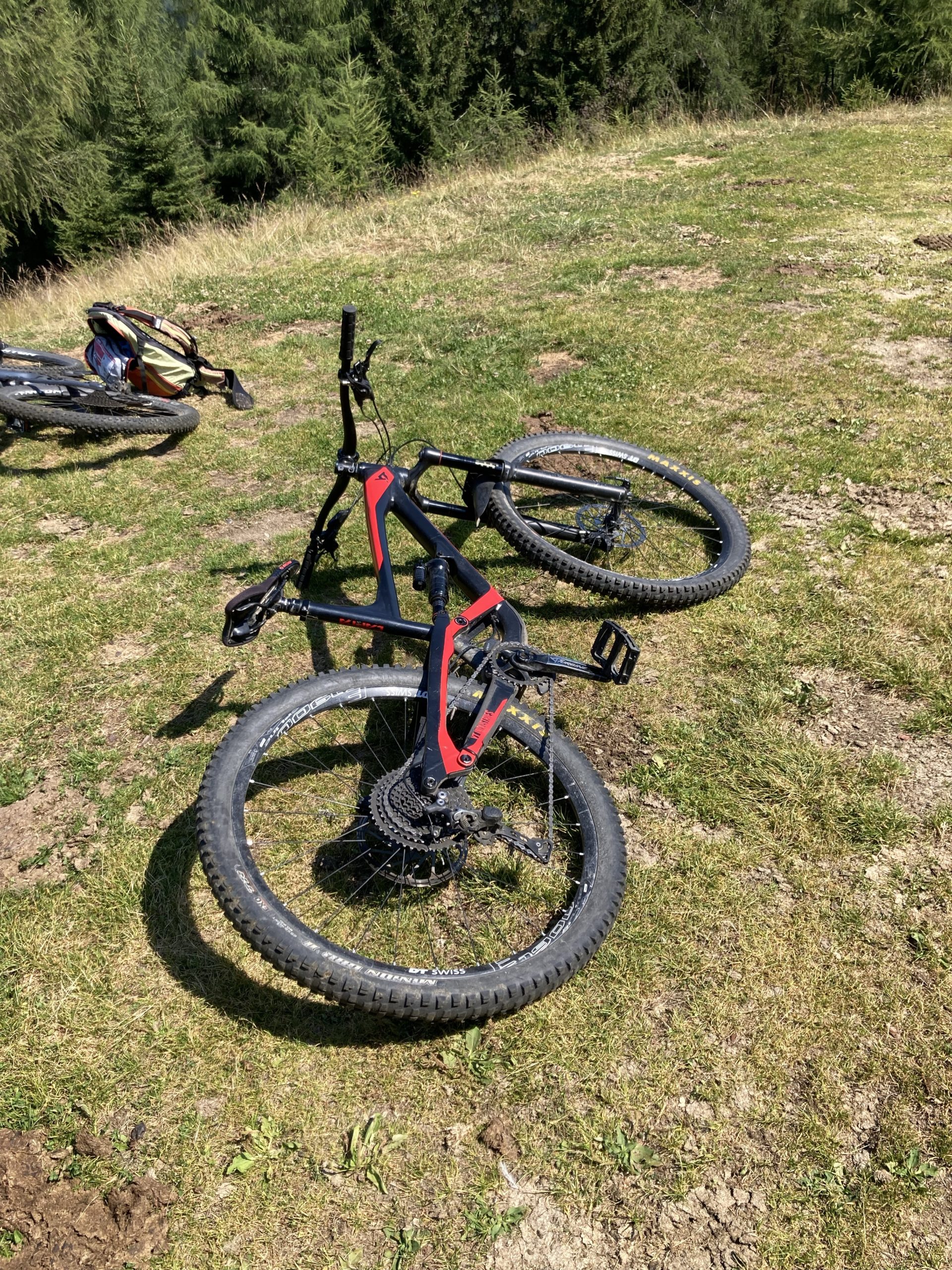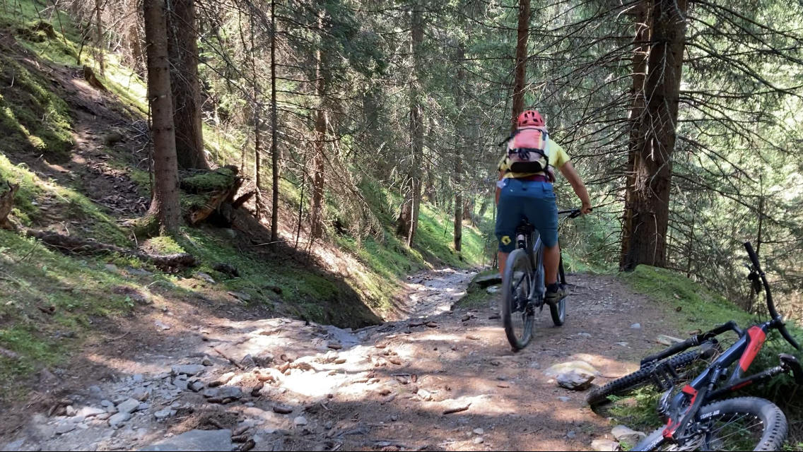 Nach der ersten Rast, wurde es dann etwas rauer! Steil! Steil, steinig und loose!!! Der Alte Almweg Trail lies keinen Platz für zögern oder Fehler und machte seiner Einstufung „schwarz“ (T2 – T2,5) alle Ehre!!! Aber mit dem Enduro-Hammer von YT einfach nur geil!!! Das Ding bügelt so ziemlich über alles hin weg was auf dem Trail auf taucht… Mega!!! und mit einem genialen Handling noch dazu! 😍 Am Trail-Ausstieg war die komplette Truppe dann auch ziemlich platt!