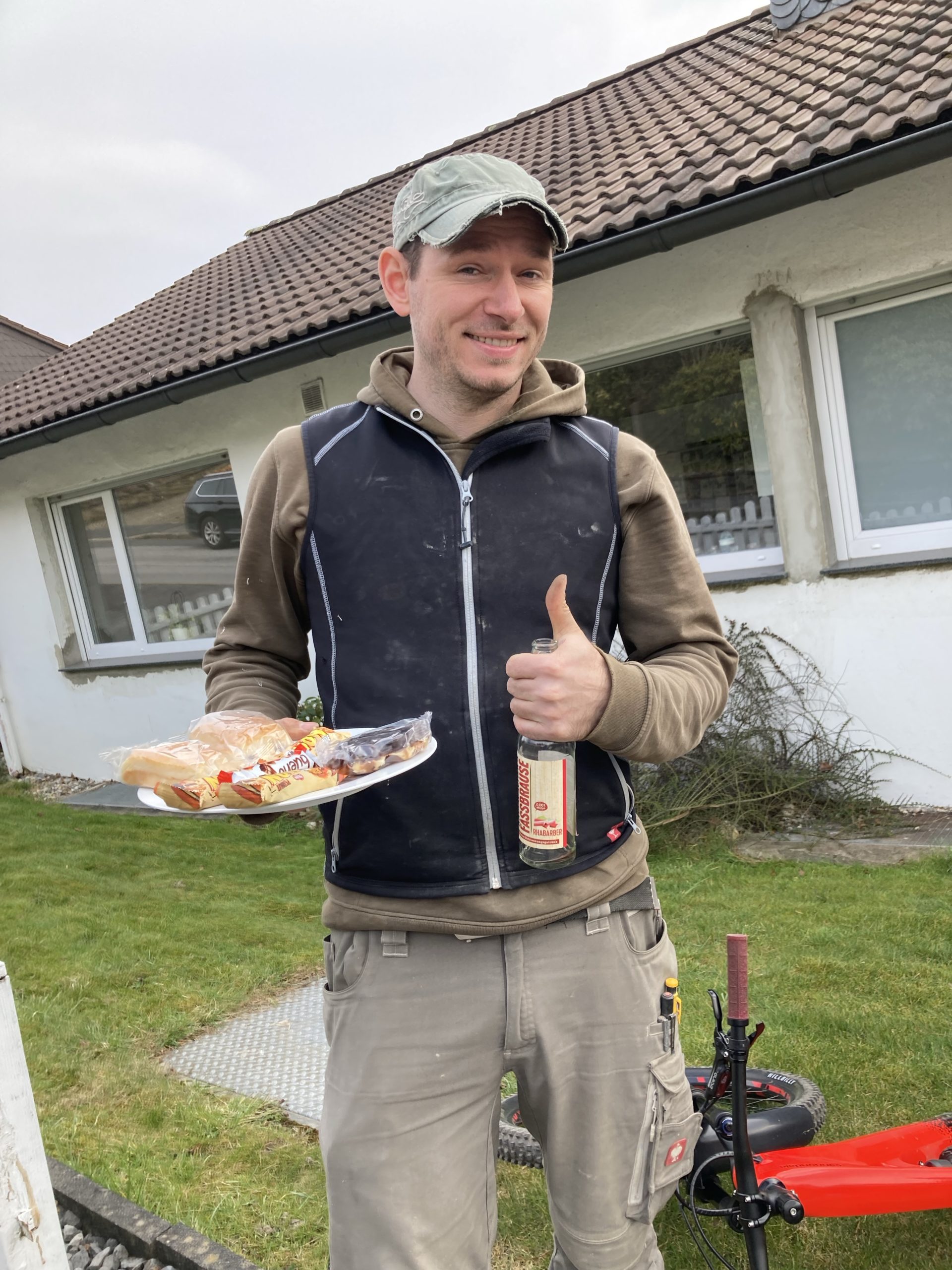 Frühlingsanfang… YES!!! Die OffSeason ist endlich vorbei. Zeit um langsam wieder die Sommerbereifung aus zu packen und die Trails zu rocken. Also machten wir uns bei Schuppigen Temperaturen auf den Weg den Frühling standesgemäß zu begrüßen! „FrostFuß“ Becki und KamikazeErnie waren mit am Start und so ging es los, die ersten Trails unter die Stollen zu bekommen. Leider stellte sich nach einiger Zeit heraus, das der 20. März nicht unbedingt der beste Tag für Schaltwerke…😵 Da muss man aufgrund eines umgestürzten Baum‘s ein mal den Trail verlassen und auf eine alternative Route abbiegen, Zack ist das Schaltwerk ab. 😭 Selbst der erbitterte Einsatz aller beteiligten konnten die Situation nicht retten. Also hieß es erstmal ohne Schaltwerk und Kette den Wald verlassen, um zum nahegelegenen Wohnsitz des „DenHill“ zu kommen. Allerdings stellte sich das ganze als schwieriger heraus wie angenommen. Bäume, überall Bäume…und das im Wald!!! 🌳 Naja liegend sind die Dinger auch echt nervig und unser „laufender Meter“ Ernie hatte sichtlich Probleme und legte sich zu guter letzt noch ne schöne Schienenbein Verletzung beim tragen zu. Aber wenigstens hat er mein Bike nicht fallen gelassen…🤣 Somit hieß es erstmal wieder…Pause…bis sich KamikazeErnie schmerzverzerrt wieder aufs Bike setzten konnte um Richtung DenHill zu rollen. Dort angekommen wurden wir mit Fassbrause und Snacks begrüßt und DenHill („der Meister der Schrauben“) konnte Erni‘s Bike mit Hilfe einer alten rostigen Kette zum SingleSpeedEMTB umbauen. Somit konnten wir letztendlich dann doch noch aus eigener Kraft zurück rollen. BIG THX!!!