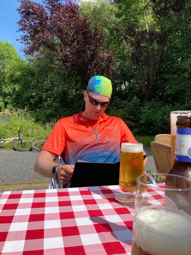 weiter!!! Und Zack nen paar Km weiter gab’s dann zur Belohnung zum wohlverdienten BierchenđŸș fĂŒr die Jungs sogar noch Waffeln 🧇 mit Sahne und Kirschen đŸ’đŸ€€